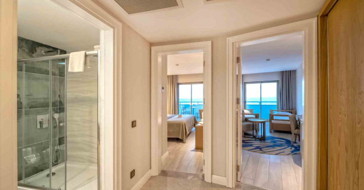 Camerele sunt dogtate cu un pat dublu mare și un pat de o persoană, balcon, duș, WC, uscător de păr, telefon în cameră și baie, halate de baie, papuci, meniu de perne, TV digital prin satelit și LCD, pătuț pentru copii (opțional), parchet laminat, seif gratuit, minibar (bere zilnică, apă și umplut cu băuturi răcoritoare, Redbull, ciocolată și chipsuri), ceainic (set ceai-cafea), aer condiționat, internet wireless gratuit (wi-fi), curățenie zilnică gratuită, trusă stomatologică, trusă de bărbierit, pieptene, pilă de unghii, prosop, gel de duș, loțiune de corp, cască de duș, săpun, șampon, bile de vată, șervețele faciale.