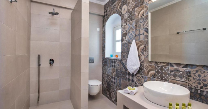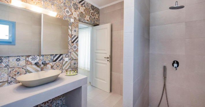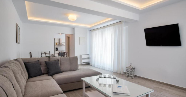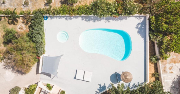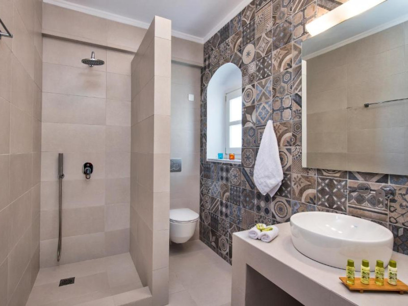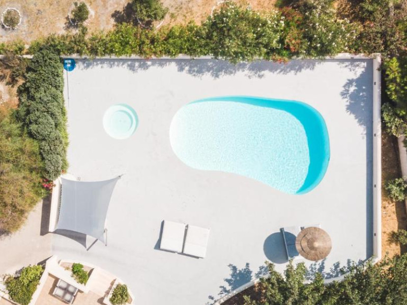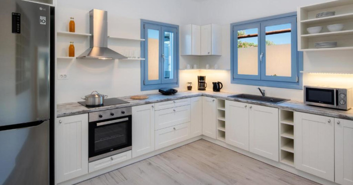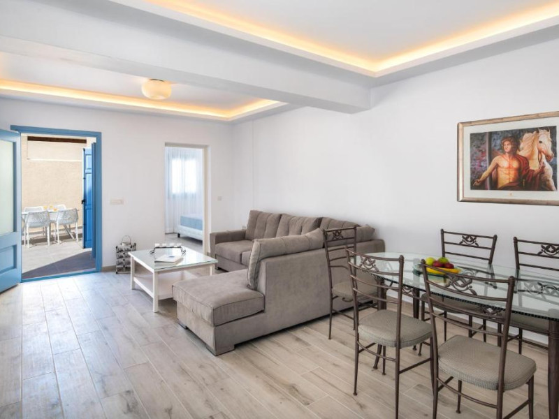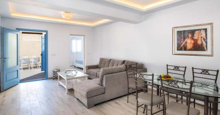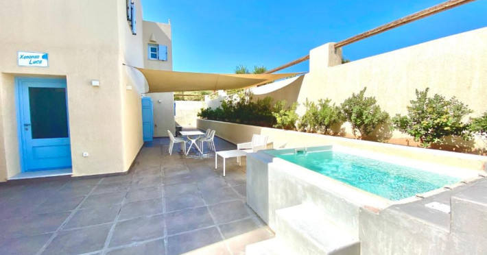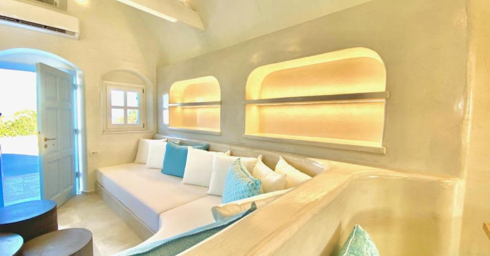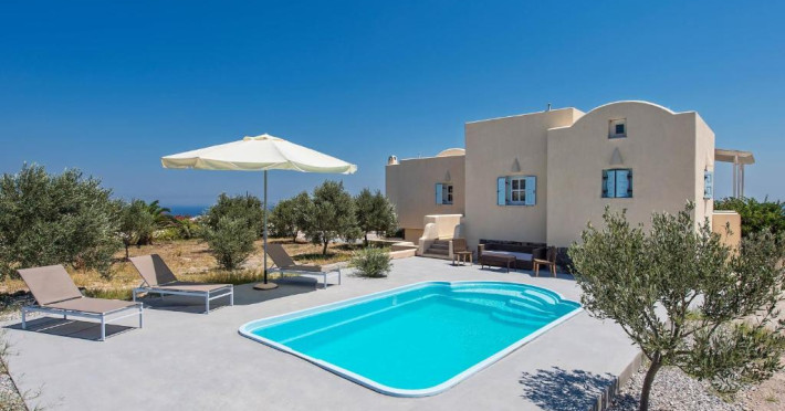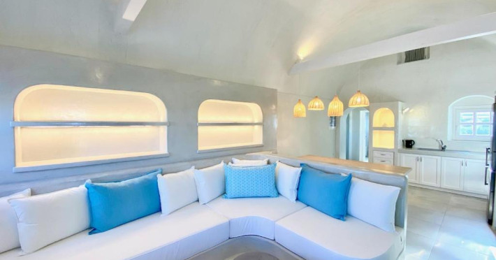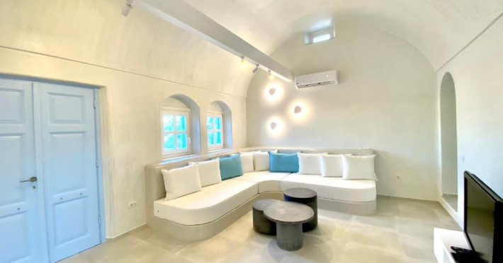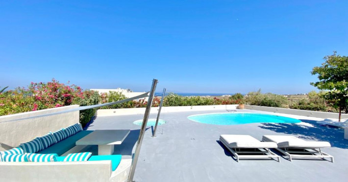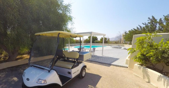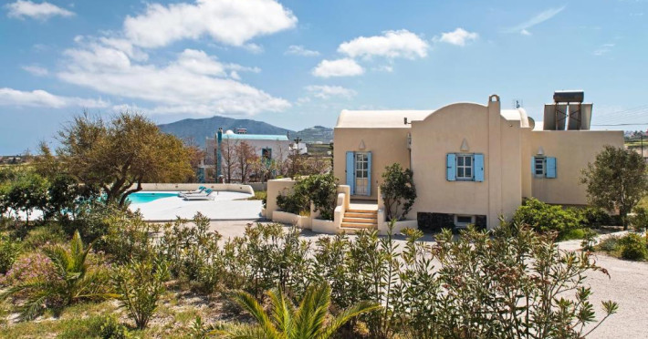 Restaurantele și barurile se află la 1,5 km de proprietate, iar la cerere și la un cost suplimentar pot fi livrate produse alimentare. Plaja Exo Gialos este situată la 1,5 km. Orașul animat Fira se află la 3 km, iar Aeroportul Santorini este situat la 10 km.