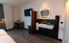 The hotel Silken Saaj Maar Adults Only is located in the vicinity of a public sandy/pebble/stone beach. The city centre is only around 100 m away. A supermarket is around 100 m away. Nearby there is a disco and a theatre which offer entertainment in high season. The beach is patrolled by a lifeguard. Near the beach there is a promenade where you can go for a stroll. The seasonally air-conditioned, GPS-verified hotel has a 24h reception (check-in is possible around the clock), Wi-Fi, internet access, 2 lifts, a jacuzzi, a first aid kit, parking spaces (limited) as well as a TV lounge with satellite TV. In the outdoor area of the property you will find a seasonally heated and supervised pool (open all year), where sun loungers, sun umbrellas and pool towels are available for free. There is also a children's pool with a non-swimming area. Furthermore, you can relax outdoors on the building`s rooftop terrace. You can store your valuables in the safe, and your luggage in the hotel`s storage room. In addition, the hotel Silken Saaj Maar Adults Only is video-monitored 24h a day. There is also a laundry service available at an additional cost to customers as well as an ironing service. Ironing equipment can also be rented at the hotel for a fee. For your comfort there is a concierge service. If necessary, you can contact the medical centre at any time (for a fee). Guests at the accommodation can get a wake-up call from the hotel personnel. The energy supply is 220 Volts. For conventions and other business meetings, the hotel offers a business centre as well as an auditorium with lectern, tables, printer, scanner as well as overhead projector. A photographer can also be ordered from the hotel for business events. If you want to explore the holiday region, you can use the car and motorbike rental service close to the hotel (extra fee). At the reception, tickets are offered for excursions in the area. For guests on their honeymoon, the hotel has special offers such as special honeymoon packages. In your hotel, a lot of focus is placed on sustainability. This includes the hotel`s own recycling bins, the provision of soap and shampoo dispensers, organic food and ecological meals, a central room air-conditioning and environmentally-friendly cleaning. American Express, Euro/Master Card, Visa and EC cards are accepted as means of payment. Due to its barrier-free facilities , such as a sliding door in the entrance area, an automatic hotel door, a hotel door that can be opened manually, barrier-free entrances, wheelchair accessible rooms, a wheelchair accessible lift, a handrail in the elevator and wheelchair-accessible bathrooms, the hotel is also suitable for wheelchair users. Catering As catering services the hotel offers half board. Breakfast is offered from the buffet. Enjoy your lunch à la carte with starters, salads and desserts (extras on request). Dinner is also served as a buffet or à la carte with starters, salads and desserts (extras on request). Half board includes breakfast and dinner. For the meals, there are a buffet restaurant with terrace (Mediterranean and gluten-free dishes) and a bar, the cafeteria, the pool bar as well as a sky bar. The drinks menu of the hotel includes water, soft drinks, coffee and tea, beer and wine. Appropriate clothing is required for lunch and dinner. Distances- Nearest town: approximately at 30 km