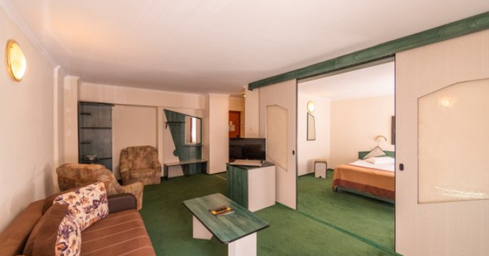- Cele 6 apartamente ale hotelului Silva sunt dedicate atat cuplurilor care doresc un plus de spatiu si comfort cat si familiilor cu copii. Apartamentul este format din dormitor cu pat matrimonial, living cu canapea extensibila si loc de relaxare, baie si balcon.