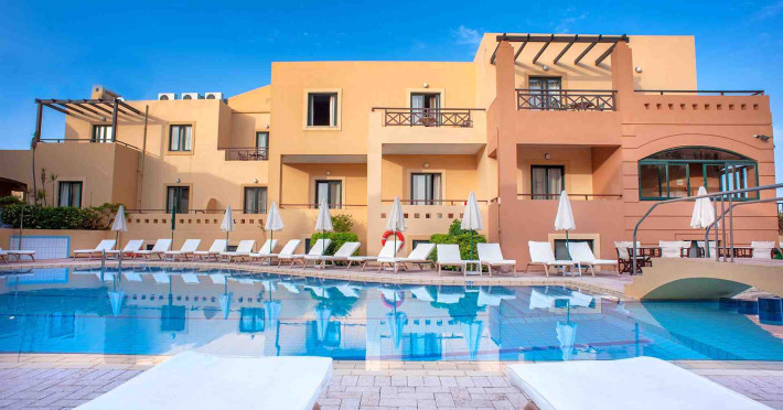 A family-oriented hotel with a total of 51 rooms and apartments, Silver Beach Hotel is an ideal destination for families and couples. Earth colors prevail in both the reception area and rooms, which are decorated in a minimal style and are equipped with air-conditioning, a television, a telephone, a safe, and internet access. In addition to the magnificent view, they also feature a fully-equipped kitchen with a microwave oven, a coffeemaker, a refrigerator and anything else that may be useful.Built perimetrically around a beautiful, central swimming pool, the guests can Relax by the pool, dive in its cool waters or sip some refreshing cocktails, enjoy some Cretan delights at the restaurant. The well-equipped gym caters to the athletic types who cannot relax even on vacation, while there are specially-designed areas with sports facilities, mini-football, volley, ping- pong and a playground to occupy the young guests in a creative way.
