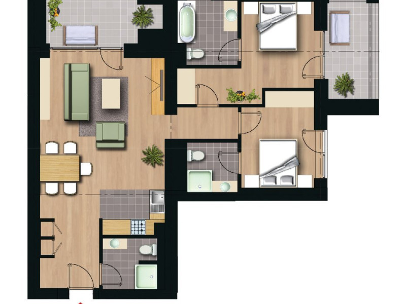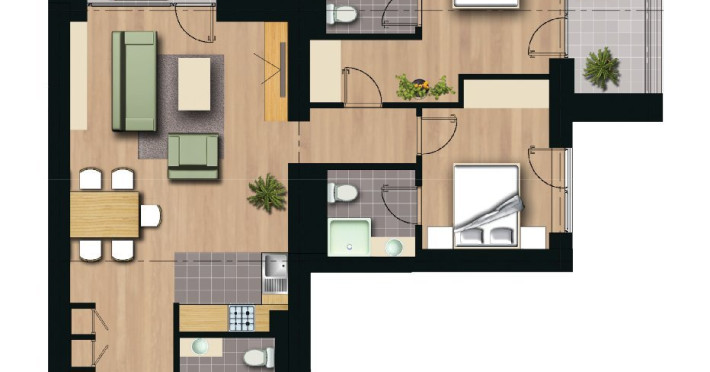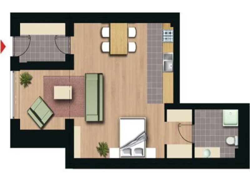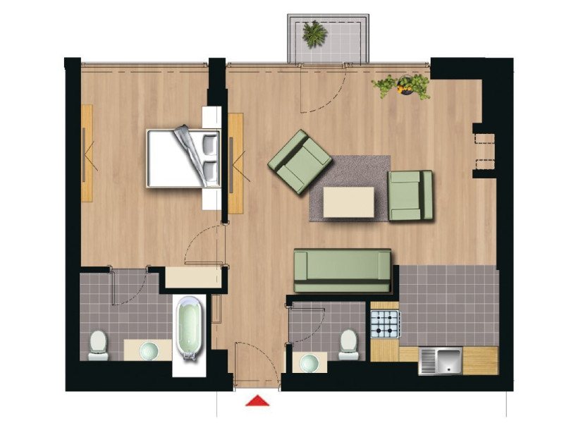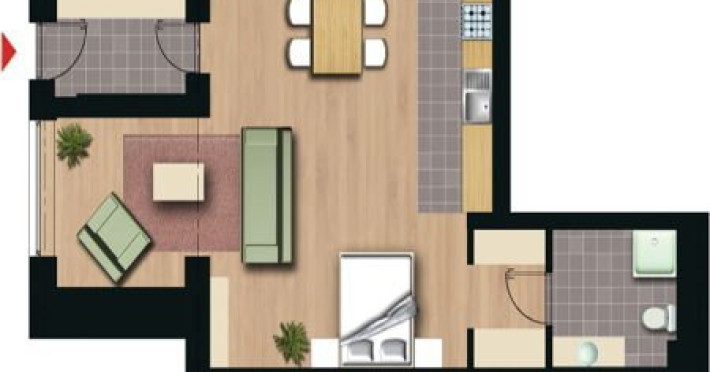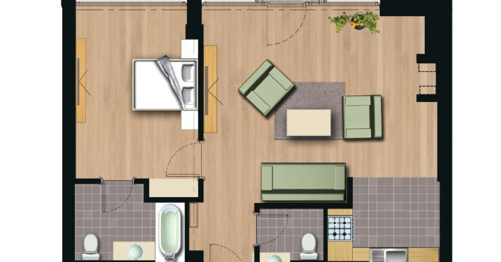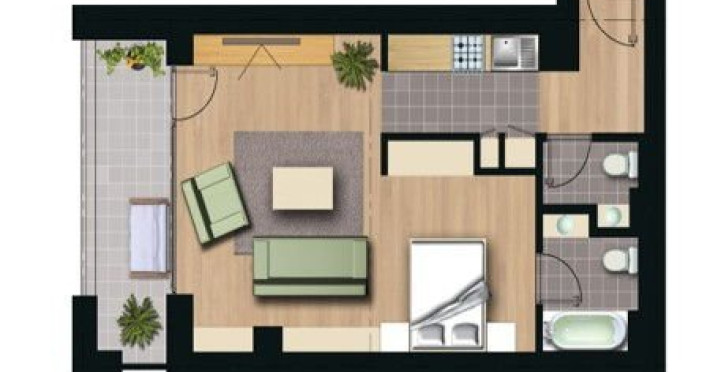 Apartamentul poate fi cu un dormitor si living sau cu doua dormitoare si living.