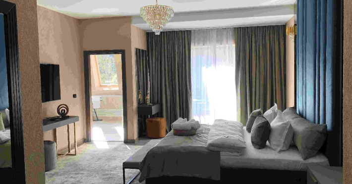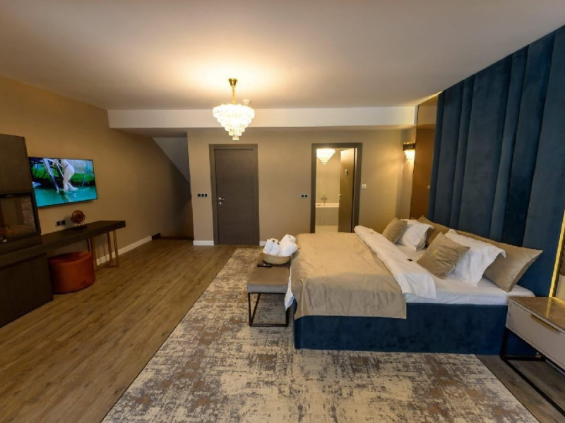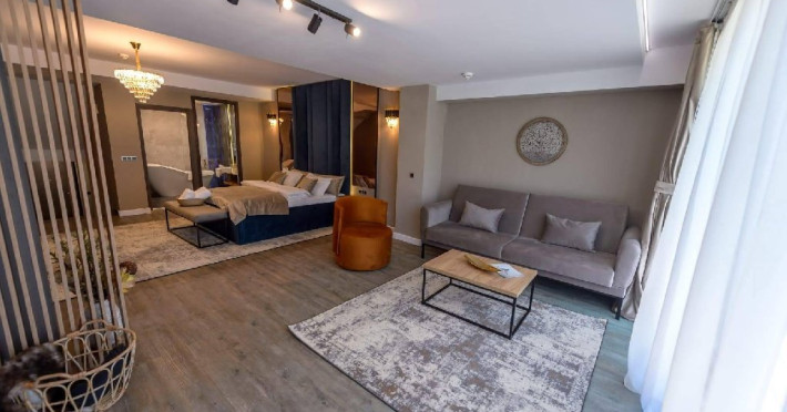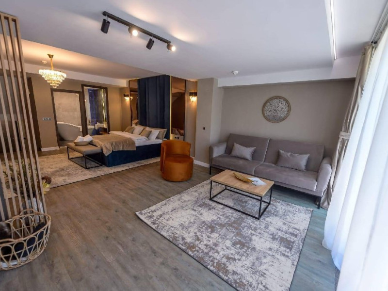 Deluxe Junior Suite ELEXUS - open space, pat matrimonial, canapea extensibila, semineu, balcon sau terasa.