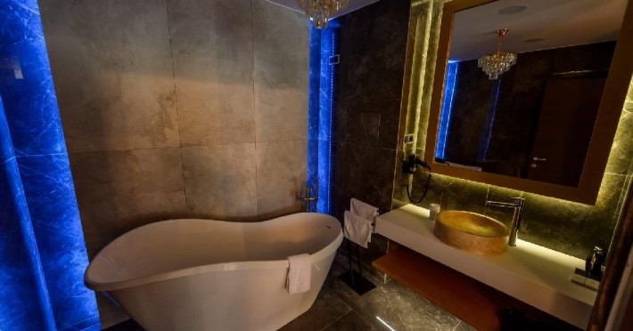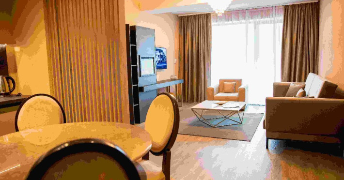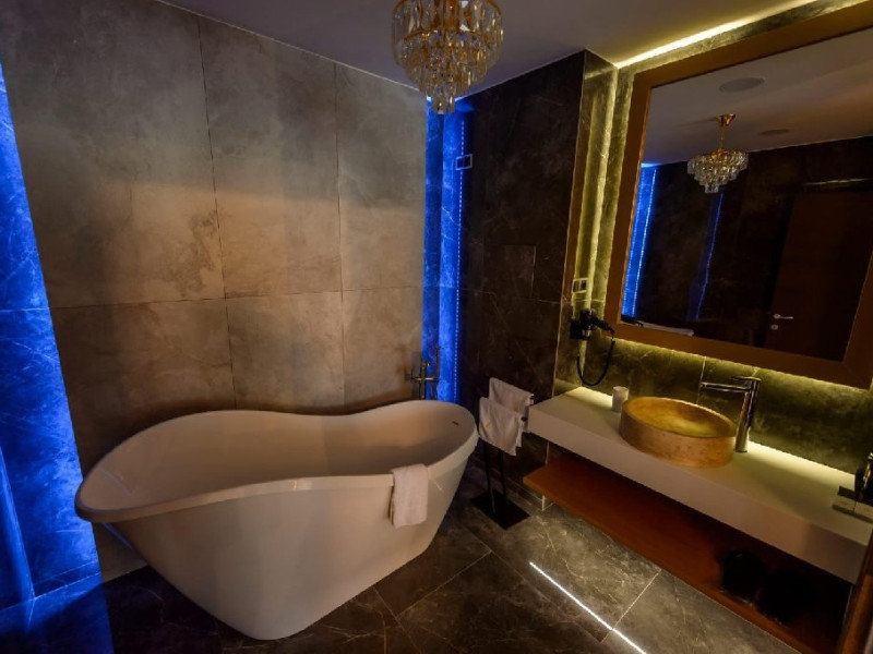Royal Junior Suite ELEXUS - open space, pat matrimonial, canapea extensibila, semineu, balcon sau terasa.