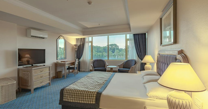 Camerele sunt dotate cu baie (dus)-wc, aer conditionat, tv, telefon, minibar, safe, uscator de par, balcon.