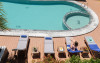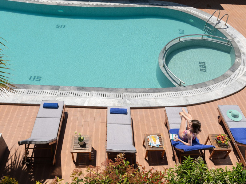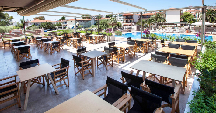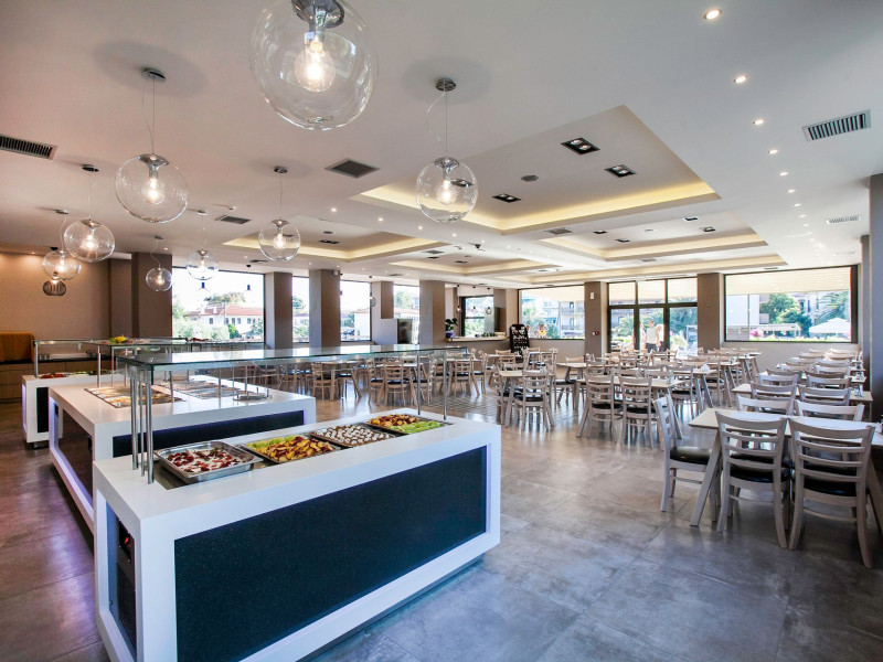 At our restaurant there is a wide array of local and Mediterranean kitchen dishes available from our lovely restaurant. Enjoy our rich breakfast/dinner buffet and delicious menu. In our two fresh-water swimming pools, we offer an outdoor Jacuzzi as well as free sun beds & umbrellas. If you feel any thirst or appetite callings, the pool bar and the snack bar offer a great variety of snacks, ice creams, salads, refreshments, cocktails and à la carte menu.