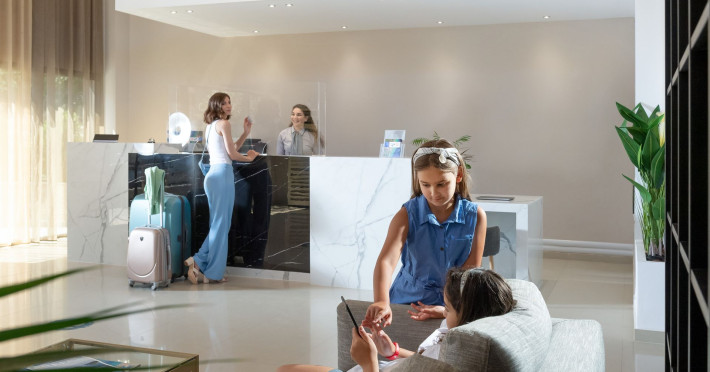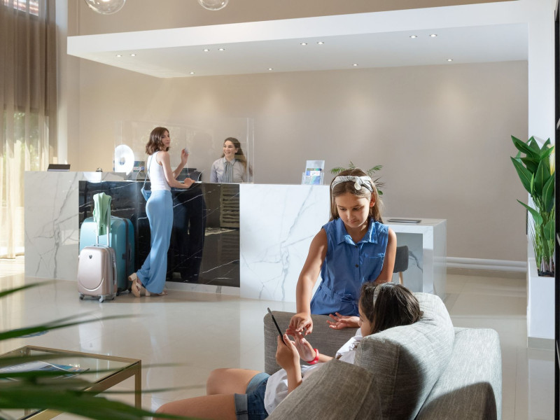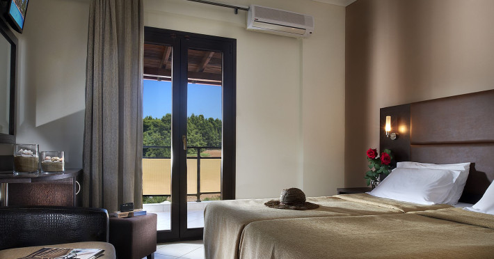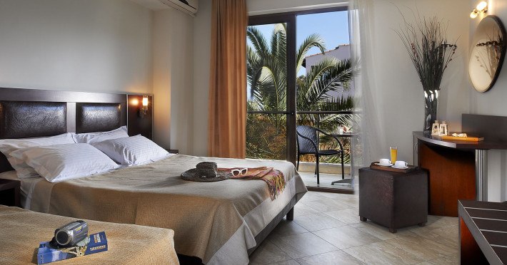 We provide air-conditioned double, triple and family rooms as well as junior suites and suites with free Wi-Fi and excellent amenities, offering relaxed and comfortable stay to all. Each one features a bathroom with a shower and complimentary toiletries, and comes with its own safety box and furnished balcony or terrace offering pool, garden or village view. In addition, there is access for people with special needs and abilities.