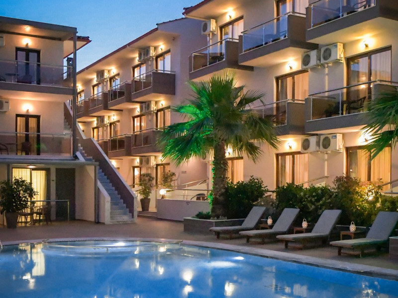 Hotel Simeon is a cozy, recently renovated holiday accommodation situated a few steps from the sea, in Metamorfosi - a bustling little Sithonian village.