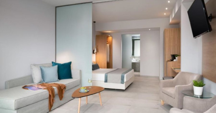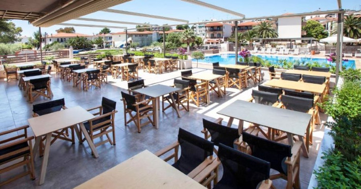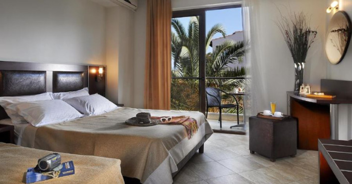 Înconjurată de o grădină de palmieri, proprietatea pune la dispoziție unități de cazare cu balcon cu vedere la piscină sau grădină. Restaurantul servește mâncăruri grecești și mediteraneene. O dată pe săptămână, proprietatea organizează nopți tematice grecești, cu muzică live.