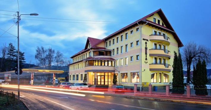 Situat la 100 de metri de centrul localit?ii Gura Humorului, Hotelul Simeria ofer internet Wi-Fi gratuit in intreaga proprietate. De asemenea, oaspe??ii au acces gratuit la saun. Camerele ?i suitele de la Simeria ofer TV prin cablu ?i telefon. Toate camerele sunt dotate cu frigider, iar baia privat are du?. Hotelul pune la dispozi?ie un bar ?i un restaurant ?-la-carte. De asemenea, oaspe??ii se pot bucura de schi pe p??rtia ?oimul, situat la 2 km. Mnstirile pictate Voronet si Humorului, aflate in patrimoniul UNESCO, se afl la mai pu?in de 6 km. Gara ?i autogara Gura Humorului sunt la 400 de metri de proprietate. Oaspe??ii pot face o scurt plimbare prin ora? ?i pot descoperi restaurante care servesc m??ncruri tradi??ionale rom??ne?ti.Datorita dinamicitatii domeniului disponibilitatea ofertelor se modifica de la un moment la altul. De aceea ofertele sunt valabile in limita locurilor disponibile. Agentia nu este responsabila pentru eventualele neconcordante care pot aparea intre informatiile privind tarifele si alte detalii din site si informatiile primite in agentie. In aceste cazuri vor avea prioritate, intotdeauna, informatiile primite in agentie.