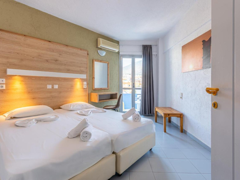 Localizare: hotelul este situat în apropiere de Plaja Glaros și la 19 km de Aeroportul Internaţional Heraklion. Facilități hotel: piscină exterioară , WiFi gratuit, transfer de la și/sau la aeroport, acces imediat la plajă, spa și centru de wellness, restaurant, sală de fitness, bar, zonă de plajă privată. Dotări camere: balcon, vedere la grădină, aer condiționat, baie privată, TV cu ecran plat, terasă, minibar,WiFi gratuit. Servicii contra cost: serviciu de transfer, serviciu de curățătorie și călcătorie, snorkelling, scufundări, facilități sporturi nautice, pescuit, echipament tenis, biliard, masaj, sală fitness, spa și centru wellness, saună, jacuzzi.Full description