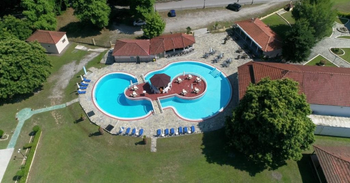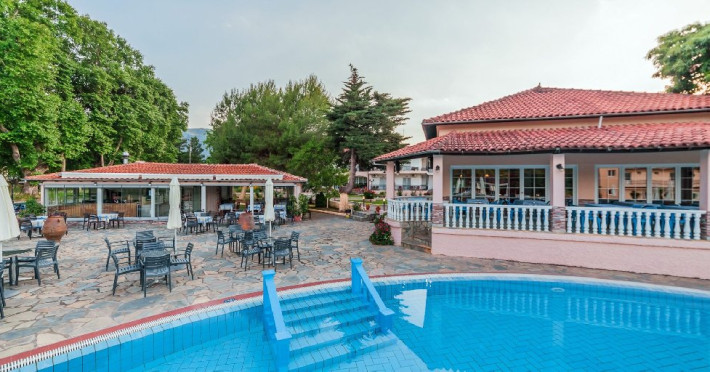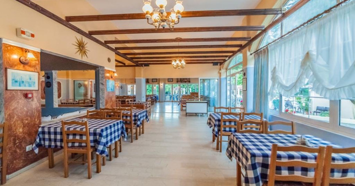 Facilitati hotel: restaurant servire mese incluse; tavern a-la-carte; piscina (de la 0,90 m pana la 3 m), bar-piscina; cafe bar; minimarket, loc de joaca pt copii cu leagane, teren volei, ping-pong. Hotelul ofera sezlonguri si umbrele gratuite la piscina.