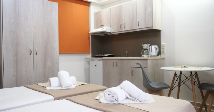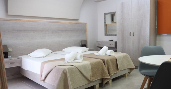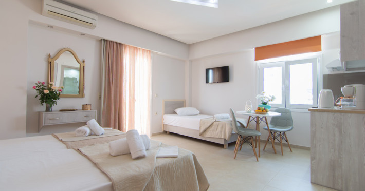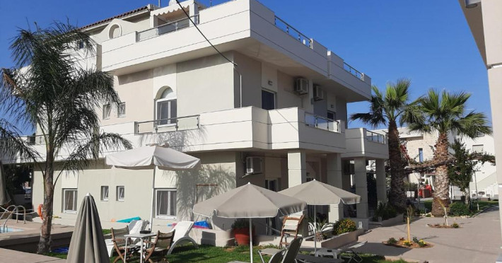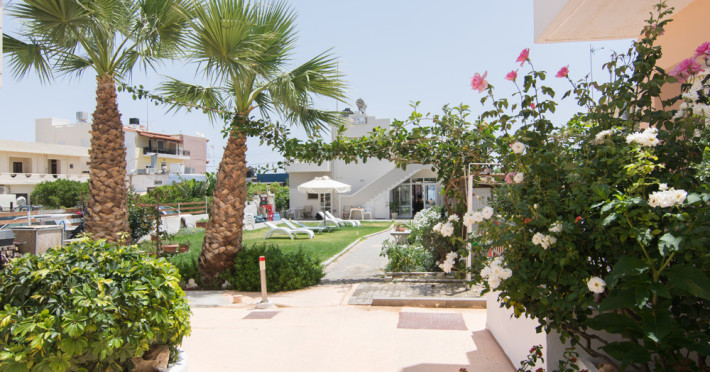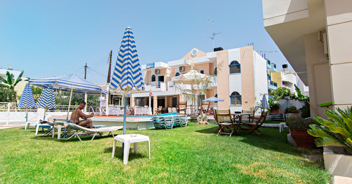 The hotel is located 27 km west of Heraklion Airport, in the resort village of Agia Pelagia, right on the beach, just 1 minute from the supermarket, shops, jewelry and souvenir shops.