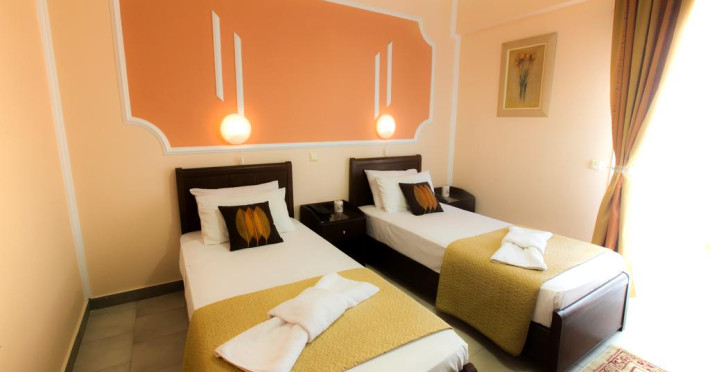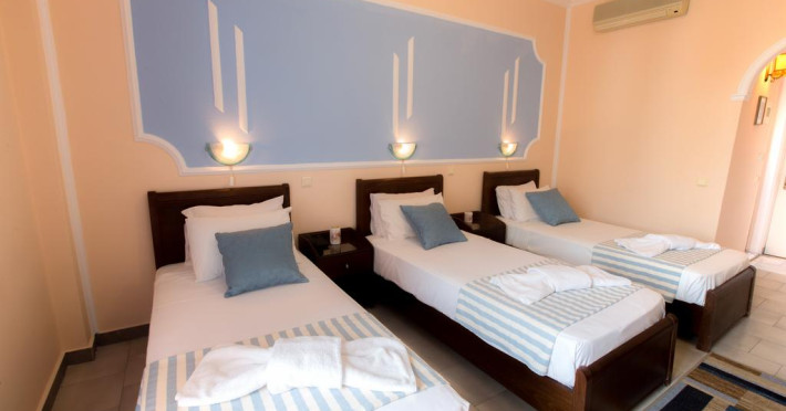 Fiecare cameră dispune de minibar. Camerele de la Sirena Beach sunt dotate cu aer condiționat, Tv cu canale prin satelit și seif. Unele camere au balcon cu vedere la mare, unde oaspeții pot admira apusul sau răsăritul soarelui. În camere există baie cu cadă sau duș. Fiecare unitate de cazare are frigider.