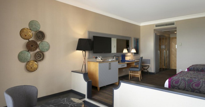 Camerele cu aer conditionat ale hotelului Sirene Belek au un interior modern, Toate camerele au televizor cu ecran plat, minibar si birou. Unele camere au si o camera de zi separata.