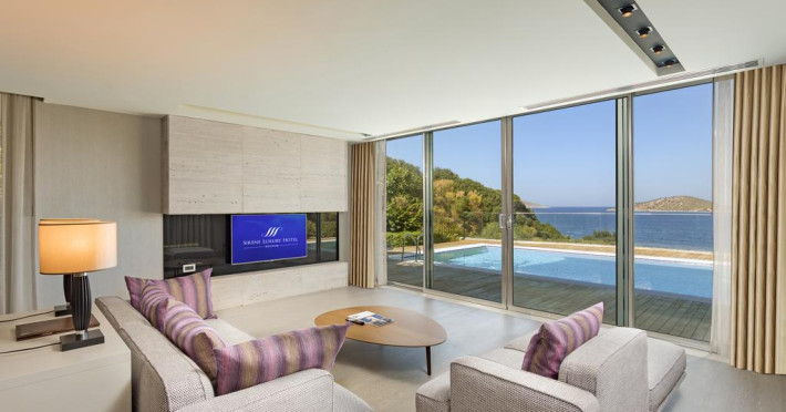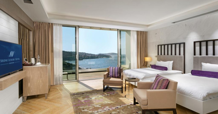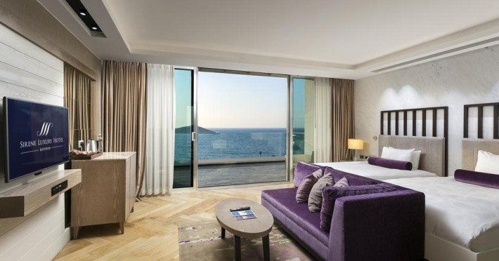 Situată în Bodrum, această proprietate de 5 stele dispune de o zonă de plajă privată cu șezlonguri și umbrele de soare, piscină interioară și 2 piscine exterioare. Facilitățile de la Sirene Luxury includ și sală de fitness. Proprietatea are, de asemenea, servicii de recepție cu program non - stop, concierge și închirieri auto. Se oferă acces gratuit la internet Wi-fi în spațiile publice. Parcarea este disponibilă la proprietate gratuit.