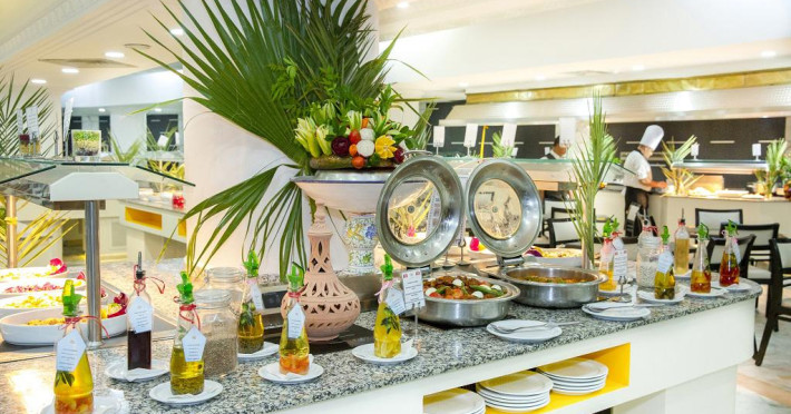 Hotelul detine bar, restaurant cu o capacitate de 320 locuri. Turistii beneficiaza de reducere 50 % la plaja Banana Beach.