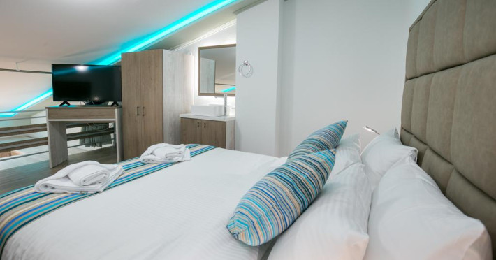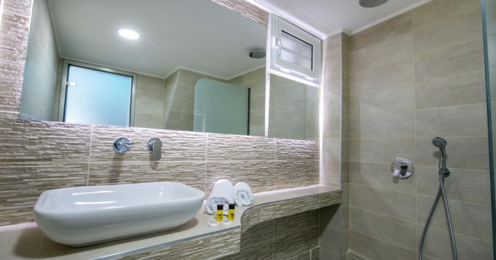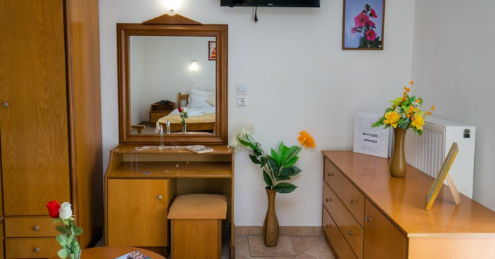 În camere există baie cu cadă sau duș ce are în dotare foehn și articole de toaletă gratuite. Camerele confortabile de la Sirines Hotel au pardoseală de gresie/ marmură, aer condiționat, Tv cu canale prin satelit și seif. Fiecare cameră dispune de cană-fierbător. Camerele au balcon cu masă și scaune unde pot fi petrecute momente de relaxare. Oaspeții au acces gratuit la serviciul Wi-fi în camere. Curățenia in cameră se face zilnic. Fiecare unitate de cazare include o chicinetă utilată cu frigider. De asemenea, este disponibilă o zonă de luat masa. Proprietatea oferă camere pentru familie cu o suprafață mai mare și un număr mai mare de paturi față de cele standard. Se pot rezerva de asemenea camere pentru nefumători.