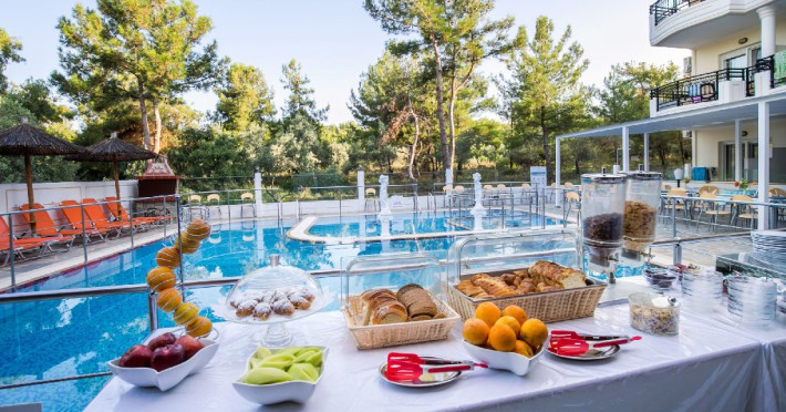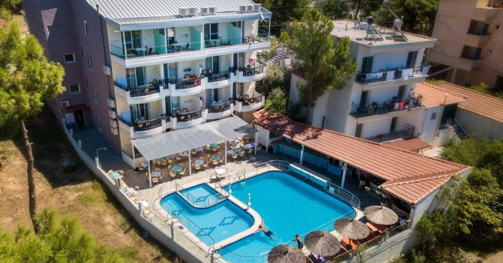 Locatie: Hotelul Sirines este situat in statiunea Potos, in sudul insulei Thassos.Hotelul se afla la 80 de metri de plaja, pe o straduta linistita in apropierea drumului principal.