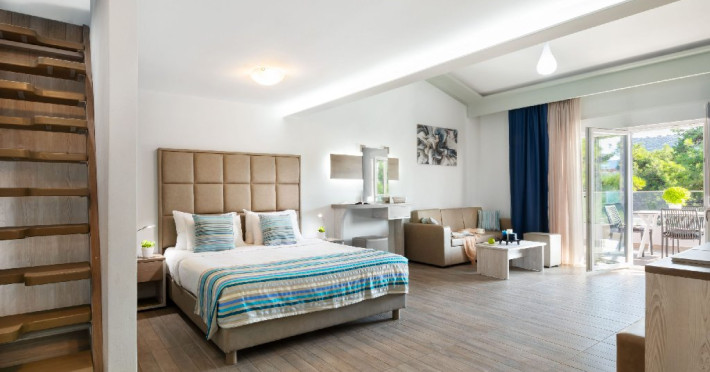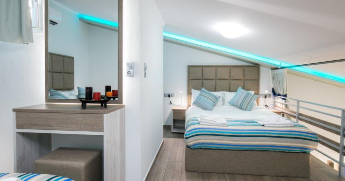 Camerele sunt spatioase, dotate cu grup sanitar propriu cu dus, aer conditionat, incalzire, TV satelit, telefon, uscator de par, seif, frigider, minibar, seif si balcoane spatioase.
