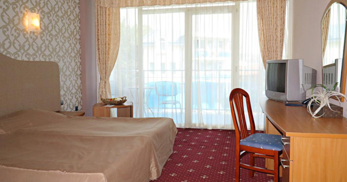 Hotelul este amplasat pe plaja cu nisip fin, aproape de izvoarele minerale. Este o locatie ideala pentru cei care doresc un sejur linistit la malul marii, alaturi de familie sau de un grup de prieteni sau pentru cei care doresc o vacanta romantica.