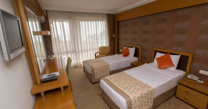 Localizare: Hotelul este localizat la 500 de metri de plaja sa privata, 2,6 km de centrul orasului Side si 65 km distanta de centrul orasului Alanya. Aeroportul Gazipasa, Alanya este la 110 km dstanta iar aeroportul din Antalya la 63 km.