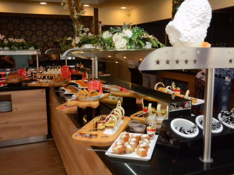 Facilitati hotel: Hotelul pune la dispozitia turistilor: receptie 24h, restaurant a la carte, lounge bar, bar pe plaja, spa si cenru wellness cu sauna, masaj, baie turceasca, tratamente corporale si faciale, piscina interioara, exterioara, piscina pentru copii, loc de joaca pentru copii, animatie, divertisment, spectacole de dans si teatru, zona de plaja privata cu sezlonguri, umbrele si saltele gratuite, sala de fitness, pinball, miniclub, biliard, tenis de masa, darts, inchiriere de autoturisme si biciclete, schimb valutar, hamam.