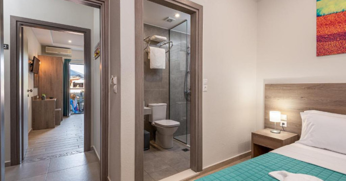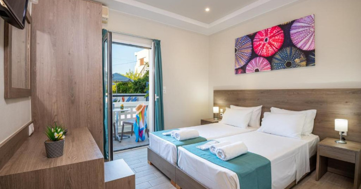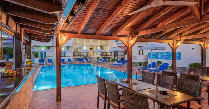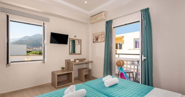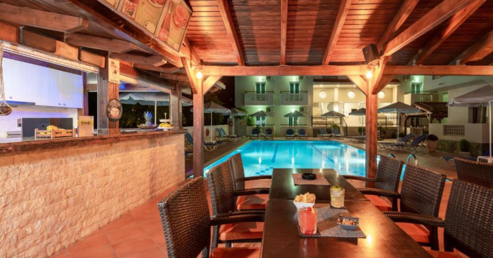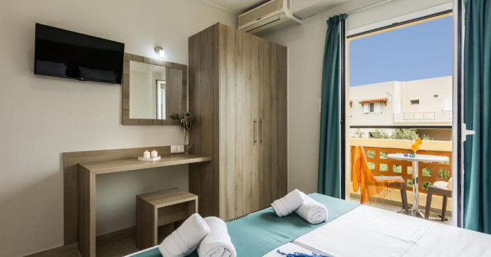 At the hotel rooms are fitted with air conditioning, a wardrobe, a flat-screen TV, a private bathroom, bed linen, towels and a balcony with pool view. The rooms have a safety deposit box.