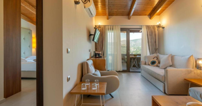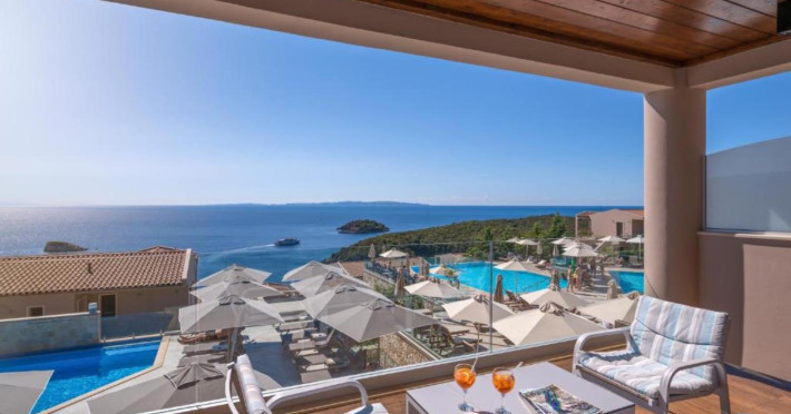 On the edge of land and sea, where the green turns blue, Sivota Diamond Spa Resort dominates. Built with stone and wood, combining traditional architecture and new style, it is a landmark for Sivota. On the top of the hill, overlooking Bella Vraka, it provides discreet luxury and total relaxation.Number of rooms