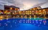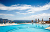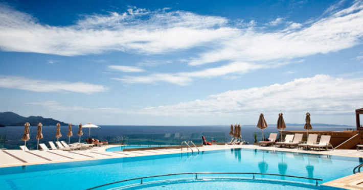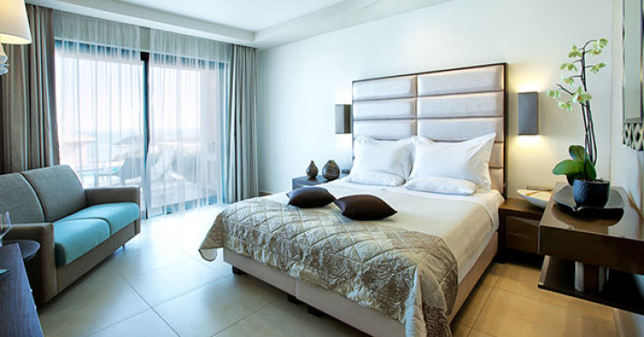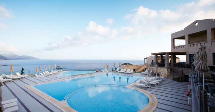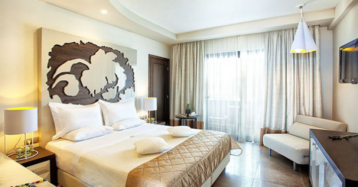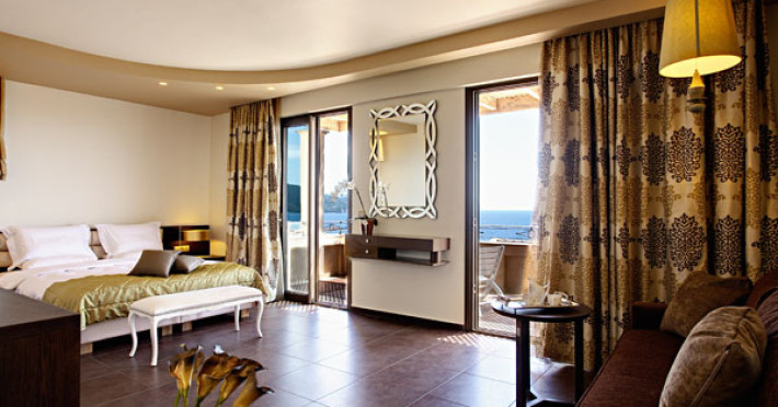 Camerele moderne si confortabile, combinate cu uimitoarea vedere a marii de un albastru deschis sunt ideale pentru o sedere relaxanta. Restaurantul principal, barul dela piscina, restaurantul a-la-carte va asteapta sa gustati preparate ale bucatariei grecesti si alte feluri alese. Hotelul este echipat cu un centru de congres si o spa, dar si cu o sala de gimnastica.