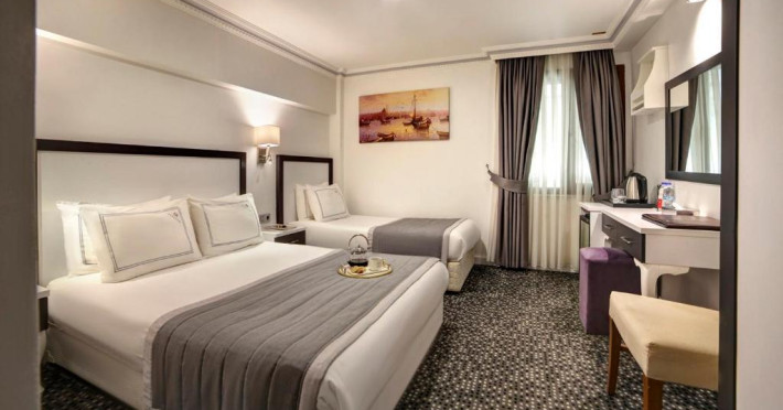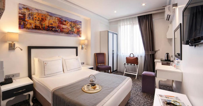 Skalion Hotel este situat la 800 de metri de Marele Bazar si imbină eleganța cu luxul, fiind decorat cu tablouri in ulei originale, pictate manual. Hotelul pune la dispoziție camere confortabile si un bar in hol, ideal pentru relaxare. In toate zonele hotelului se oferă acces gratuit la internet WiFi.