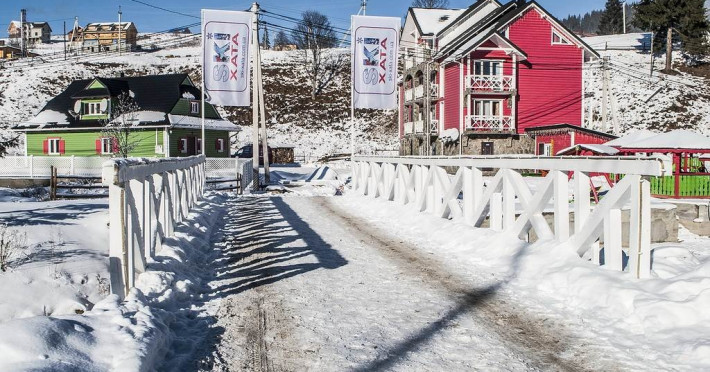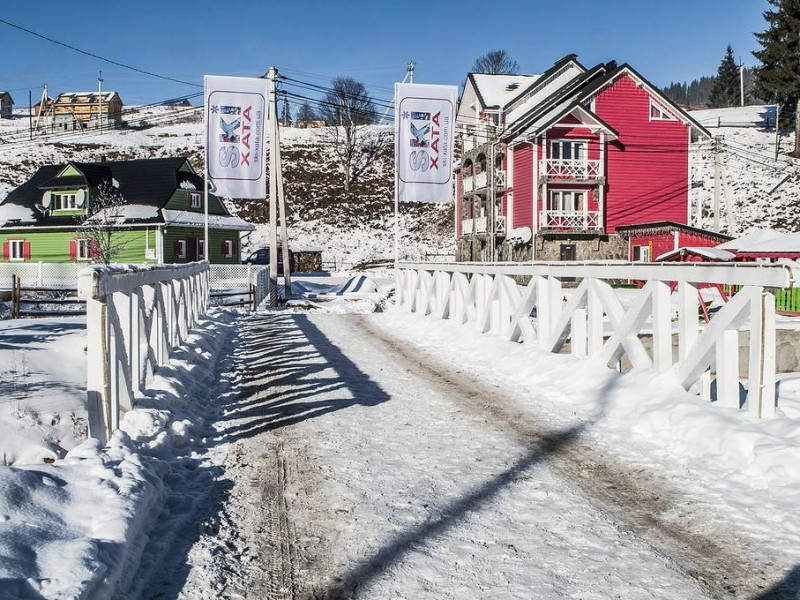 Localizare: Complexul este situat la intrarea in statiunea de schi Bukovel, la doar 250 metri de partie.Descriere: Complexul Ski Hata a creat conditii ideale pentru familii, pentru a va restabili forta si pentru a va incarca bateriile. Interiorul cabanei prezinta pe pereti fragmente de ziduri si tavane din lut, covoare tesute pe pereti, streasina sculptata pentru perdele, mobilier realizat manual.