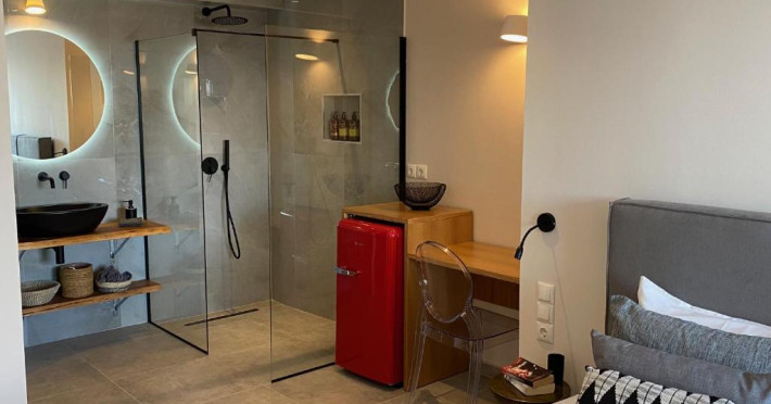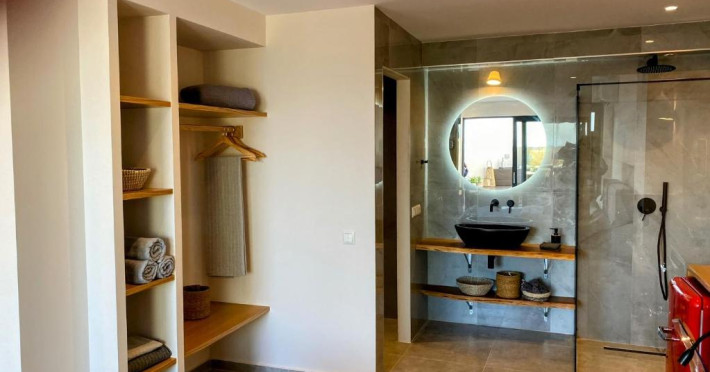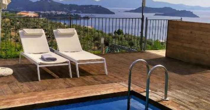 Vilele insorite cu 2 și oferă 2 dormitoare separate cu pat queen-size, o baie și un balcon cu vedere la mare la etajul 1. Toate includ o bucătărie utilată complet cu o masă din lemn, precum și o cameră de zi cu canapele și șemineu. .