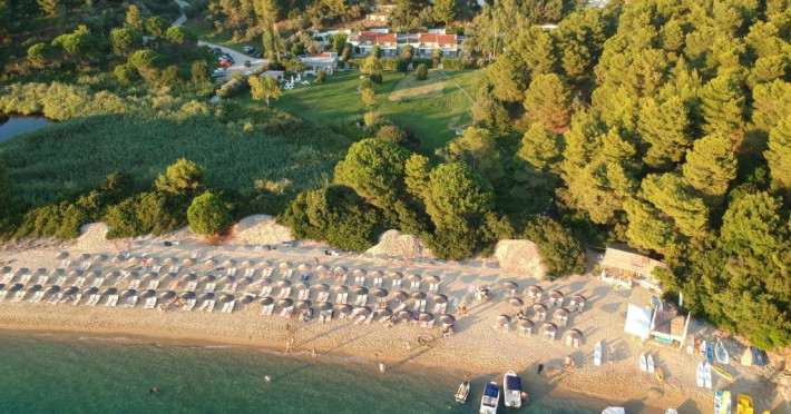 Personalul hotelului poate aranja inchirieri de mașini sau bărci și poate rezerva excursii la plajele din apropiere. Orasul Skiathos se află la 6 km, iar Aeroportul Skiathos este la 8 km distantă.
