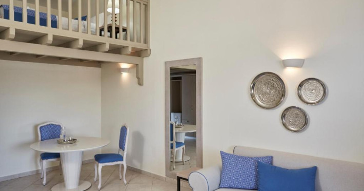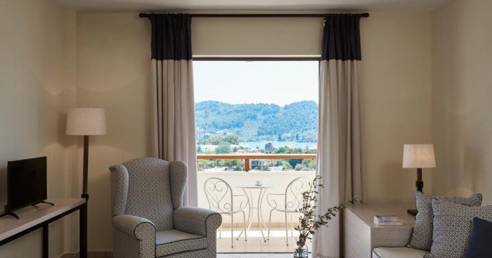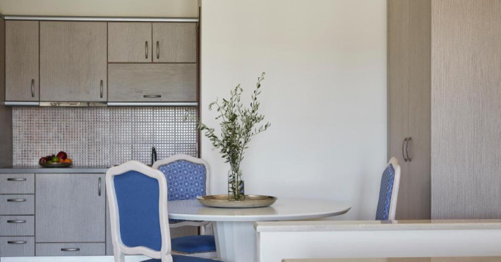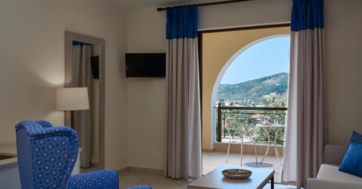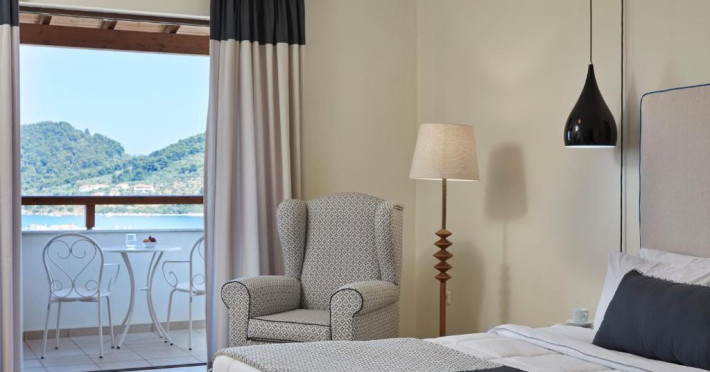 Toate camerele hotelului au birou, TV cu ecran plat si baie privată. Sunt dotate cu aer condiționat, iar unele camere de la Skiathos Living au balcon. Camerele au frigider.