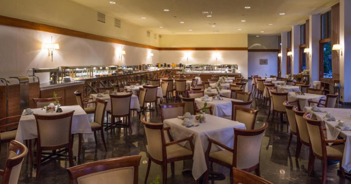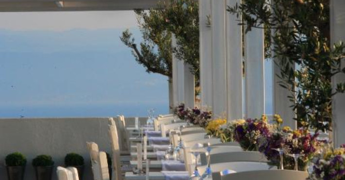 Restaurantul principal oferă mic dejun american sau grecesc, precum și preparate din bucătăria grecească și internațională. Restaurantul White View Grill servește mancăruri locale și fructe de mare intr-o grădină minunată de pe acoperiș cu vedere la mare. Trei baruri, la hol, la piscină și pe plajă, vand băuturi și cocktailuri exotice.