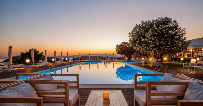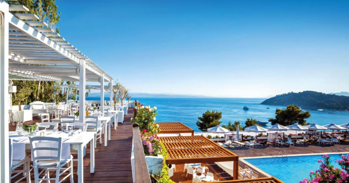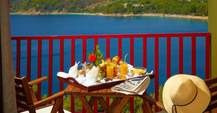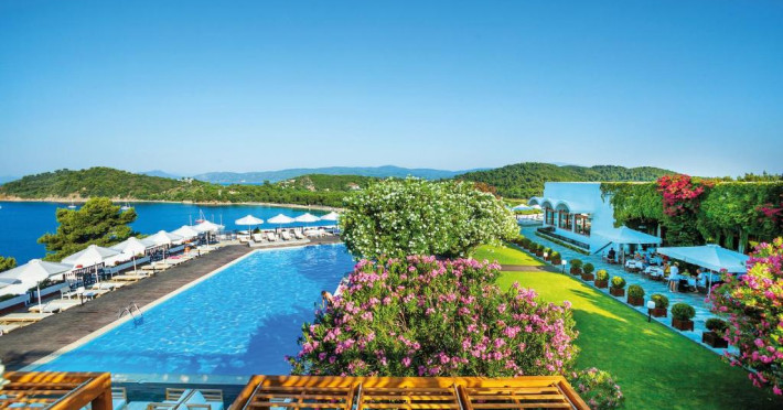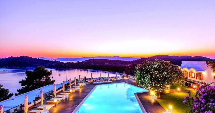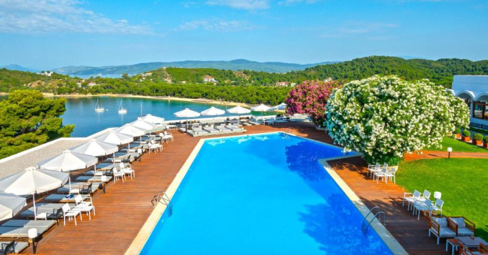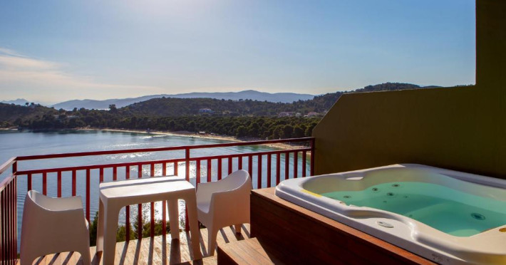 Oferind vedere spectaculoasă la golful Koukounaries, Hotelul Skiathos Palace oferă o piscină cu terasă la soare, la doar 150 de metri de plaja cu nisip Maratha. Acesta include camere cu vedere la Marea Egee și 2 restaurante.