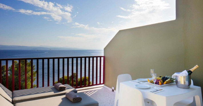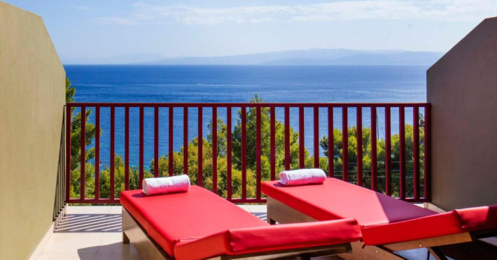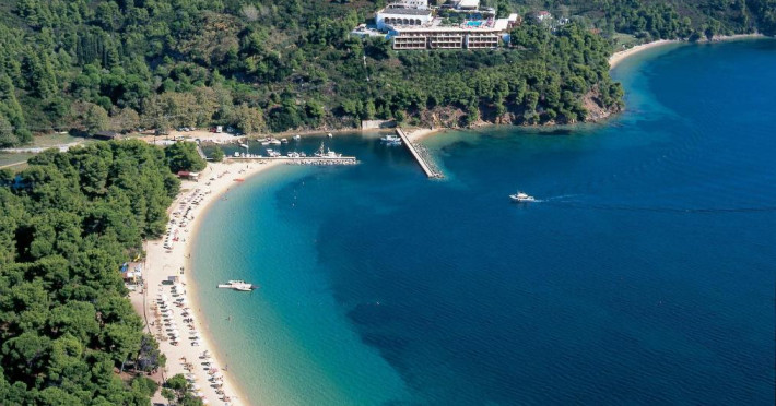 Celebra plajă Koukounaries este la 250 de metri de complex și oferă numeroase opțiuni de sporturi nautice. Orașul principal și aeroportul Skiathos sunt ambele la 12 km. Este disponibilă o parcare gratuită.