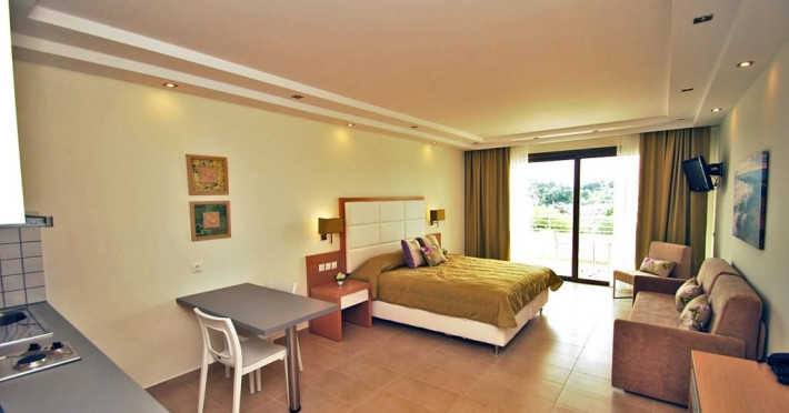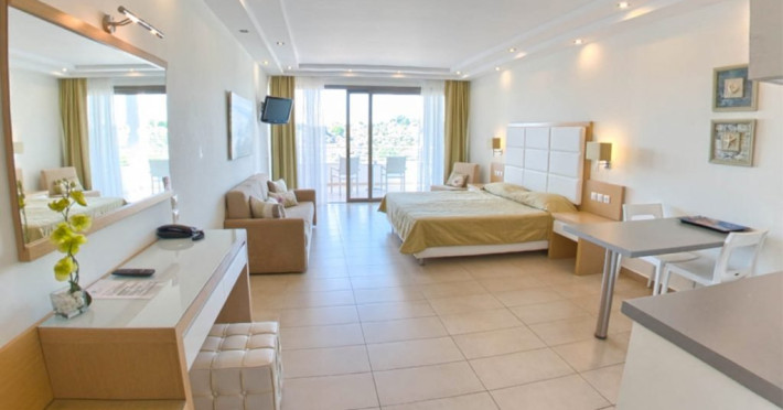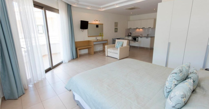 Facilitati camere: hotelul are in component studiouri luxoase modern si elegant mobilate cu lumina naturala din belsug. Sunt imparite in studio dublu ( 40 mp, ocupare maxima 2 persoane), studio triplu ( 40 mp, ocupare maxima 3 persoane), studio triplu plus (40 mp, ocupare maxima 4 persoane). Toate camerele sunt dotate cu aer conditionat, baie cu dus, frigider, kettle, seif, TV prin satelit, telefon, wi-fi, balcon