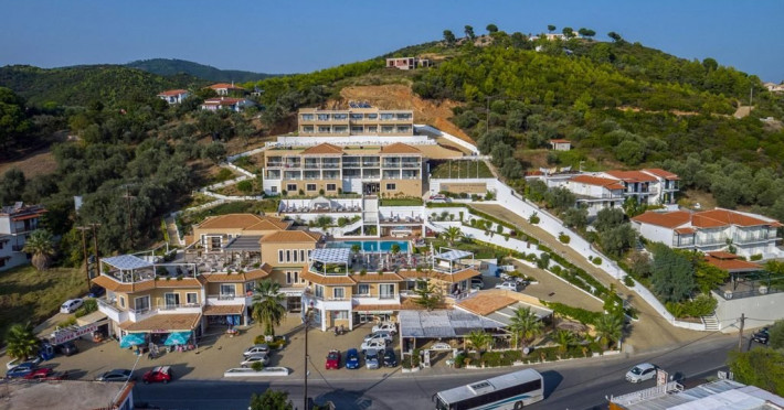 Localizare: hotelul este situat pe dealurile inverzite ale Troulos, cu o priveliste panoramica asupra regiunii Troulos si a Marii Egee, la 800 de metri de plaja Troulos si 8 km de centrul orasului Skiathos.