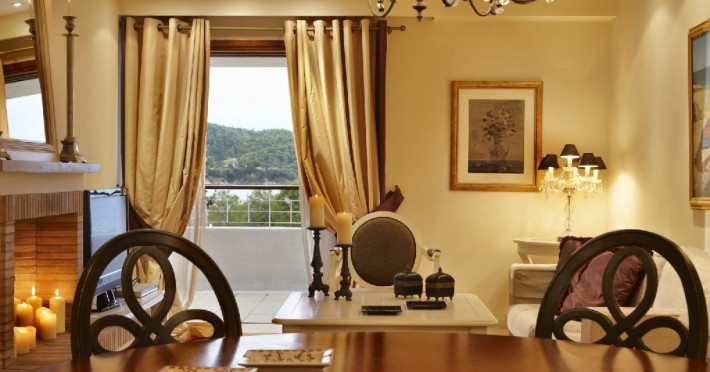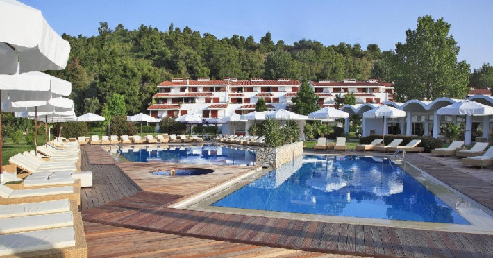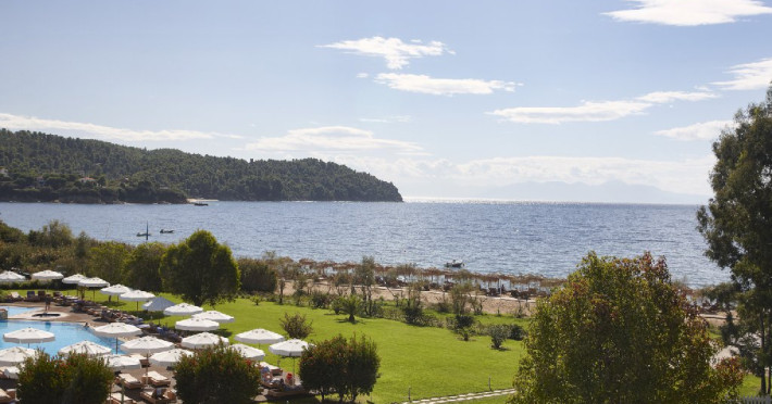 Localizare: Este un hotel elegant, care face parte din Small Luxury of the World si este amplasat la 8 kilometri de orasul Skiathos, pe plaja Agia Paraskevi, si este inconjurat de gradini. Este locatia ideala pentru o vacanta relaxata in familie.