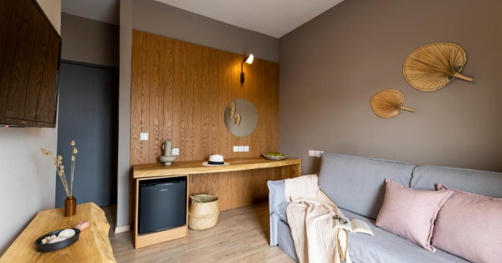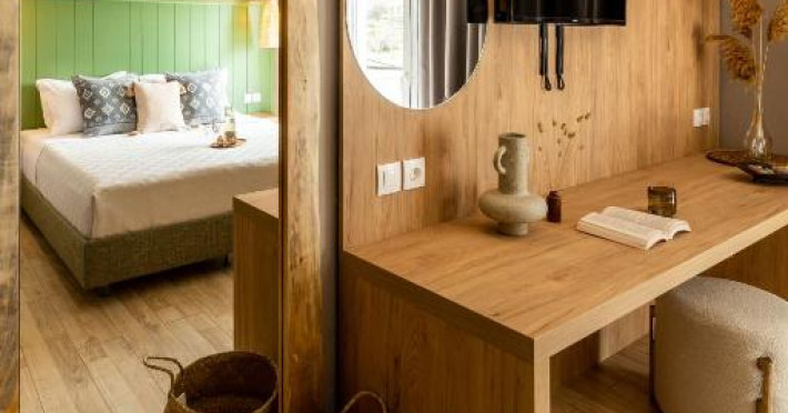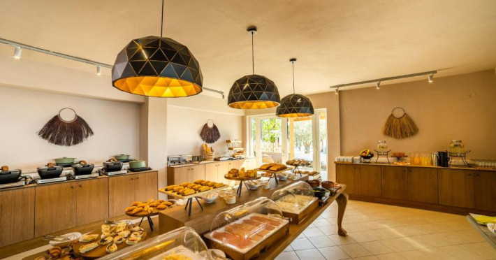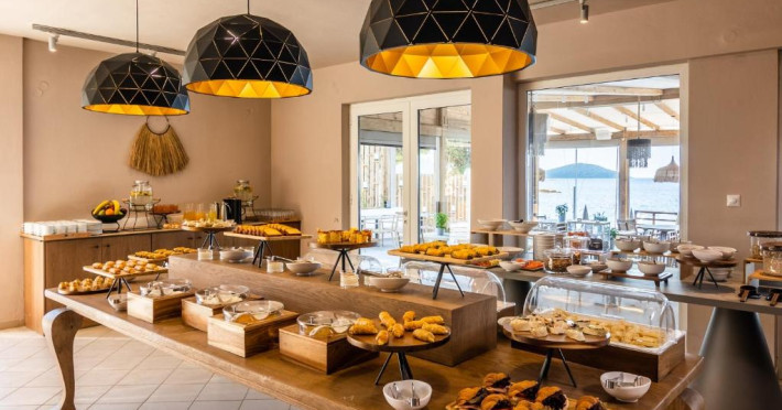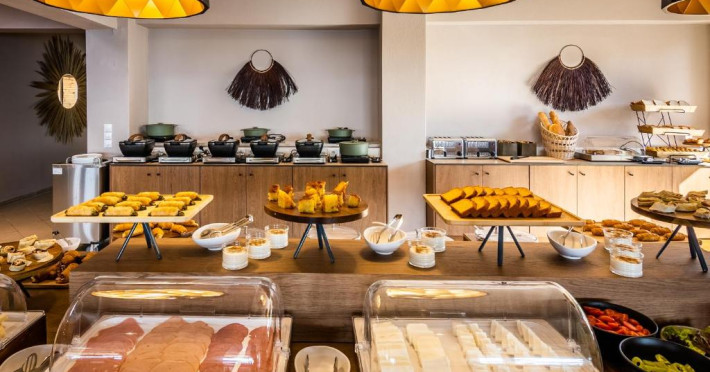 Camerele luminoase și spațioase sunt decorate in nuanțe mediteraneene și sunt dotate cu balcoane private, perfecte pentru momentele de relaxare cu vedere la mare. Restaurantul hotelului servește preparate grecești autentice și specialități internaționale, intr-o atmosferă rafinată.