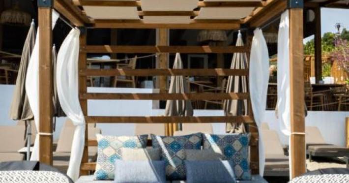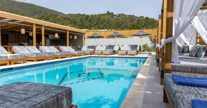 Plaja cu nisip fin din Megali Ammos se află la doar cațiva pași de hotel, iar piscina infinity oferă o alternativă elegantă pentru răcorire. Oaspeții se pot bucura de centrul spa cu tratamente tradiționale grecești și de lounge-ul cu vedere panoramică. Orașul Skiathos, cu tavernele și magazinele sale pitorești, este ușor accesibil, făcand din Skiathos Theros o alegere excelentă pentru o vacanță grecească autentică.