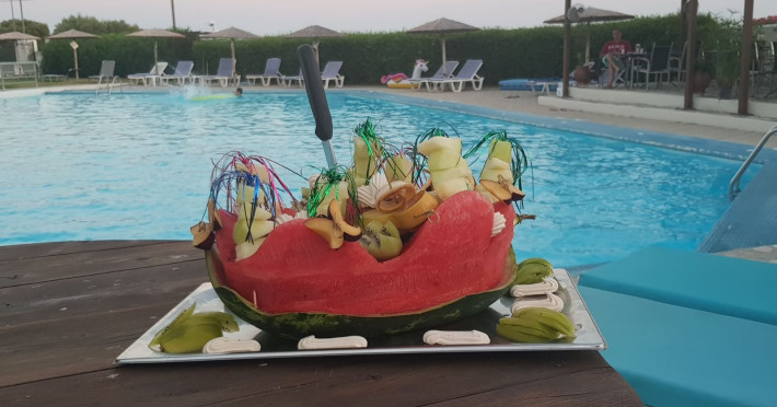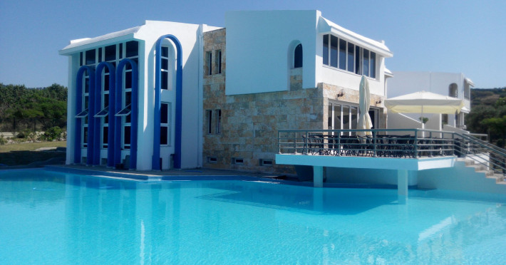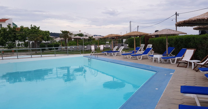 The Skion Palace 4+* hotel by the sea, witha a huge green area ideal for every person who wants to have a luxury relax, is located in Nea Skionis natural and tranquil beauty area where the fresh fish is the symbol of this beautiful village in Kassandra, Chalkidiki. This new opened hotel in 2015, have works in progress in order to enrich internal and external outfit and satisfy even the most demanded guest. A small earthly paradise is waiting to welcome every guest would like to visit it and feel the hospitality of a more than a 4* hotel. The indoor underground parking area, the swimming pools, one for adults and one for children, and the endless view with the sense of privacy and calmness are some of the advantages that this hotel provides. It is a real centerpiece ideally located in the heart of nature amid small verdant hills, sandy organized beach with sandy bottom and the crystal clear waters of the blue sea dominating around it. It is only 85km away from Thessalonikis airport and 100km from Thessaloniki city center. At the same time, it is in a short distance from the areas of Hanioti and Pefkohori with many entertainment options where soul meets the heart of Kassandra peninsula. We must also mention that Skion Palace is round 10 km far from the area of Loutra Agias Paraskevis where natural medicinal springs are. Moreover, you have the chance to visit the famous beach bars in the well known sandy beaches of Paliouri. The complex lying on 10.000 square meters, cosists of pool bar and 8 separate two-level buildings, where reception with lobby bar, restaurant and 56 garden and sea view rooms, executive family rooms and suites are. All rooms are spacious and comfortable with luxurious marble being everywhere. All the above combined with the unique sea and sun of Nea Skioni as well as the ideal location of the complex can offer an unforgettable escape and experience.Datorita dinamicitatii domeniului disponibilitatea ofertelor se modifica de la un moment la altul. De aceea ofertele sunt valabile in limita locurilor disponibile. Agentia nu este responsabila pentru eventualele neconcordante care pot aparea intre informatiile privind tarifele si alte detalii din site si informatiile primite in agentie. In aceste cazuri vor avea prioritate, intotdeauna, informatiile primite in agentie.