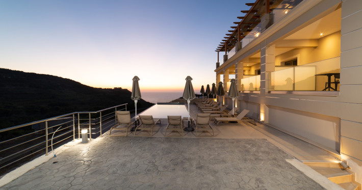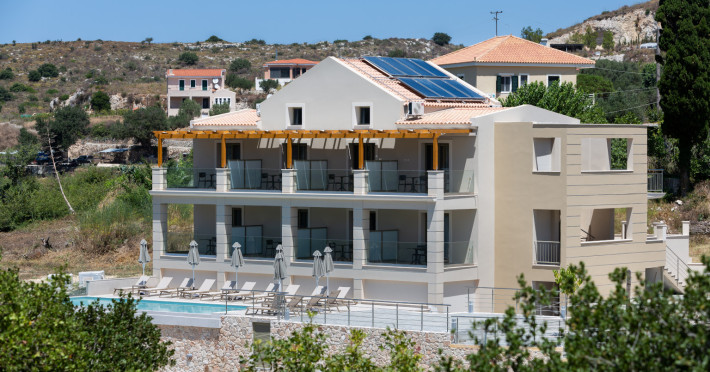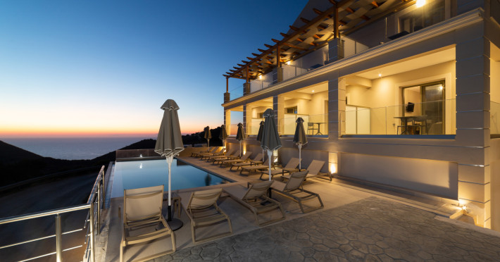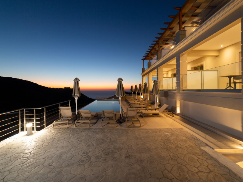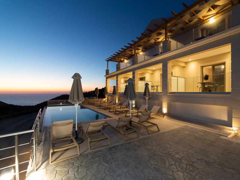In the north-western point of Paliki peninsula, set in a beautiful landscape, located just a short distance from Petani Beach, you will find #34;Sky View Suites. This newly built (2023) accommodation, is an ideal option for every traveller who is looking for serenity along with remarkable views. The environment of this establishment guarantees privacy, relaxation and comfort in one of the most romantic parts of Kefalonia. The accommodation is a very short distance, only 3 km to Petani beach, a great destination for swimming in crystal clear waters and dining at the charming restaurants/tavernas on the spot, it is also within a couple of minutes walk to Vovikes village, where traditional restaurants and a minimarket can be found. Lixouri, the second largest town in the island, the main town of the Paliki peninsula, is a just 20 minute drive approx.. The capital of the island, Argostoli is a 50 minute drive approx.. Argostoli amp; Lixouri are also connected via a regular ferry service running on a daily basis. _REFERENCE POINTS:_ *Airport: Kefalonia International #34;Anna Pollatou#34; [EFL]: 40.7 km *Beach: Petani: 3 km *Town Centre: Lixouri: 9.5 km *Port: Lixouri port: 9.5 km _POINTS OF INTEREST:_ Gerogompos lighthouse: 14.1 km || Monastery of Kipouria: 9.1 km || Xi beach: 16.1 km ||Myrtos beach: 29.2 km || Melissani lake: 39.4 km || Monastery of St. Gerasimos: 39.3 km || Fiscardo: 49.5 km || Assos village: 36.2 kmDatorita dinamicitatii domeniului disponibilitatea ofertelor se modifica de la un moment la altul. De aceea ofertele sunt valabile in limita locurilor disponibile. Agentia nu este responsabila pentru eventualele neconcordante care pot aparea intre informatiile privind tarifele si alte detalii din site si informatiile primite in agentie. In aceste cazuri vor avea prioritate, intotdeauna, informatiile primite in agentie.