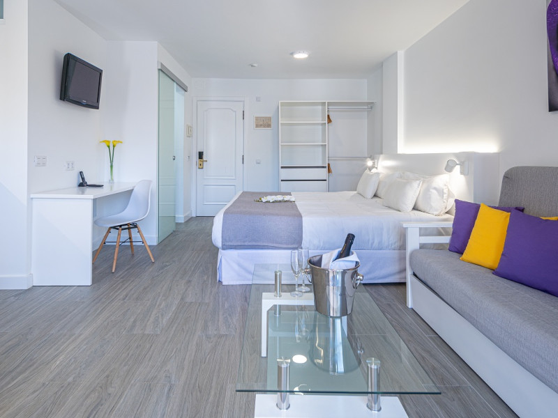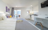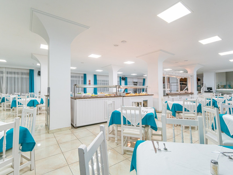 About 300 m from a beach lies the accommodation Skyview Hotel. The nearest restaurants and bars can be found within 300 m. The old town is around 400 m away. The nearest shops you can reach within around 600 m, a supermarket is around 200 m away. Nearby there is a leisure park which offers entertainment in high season. The hotel is equipped with internet access as well as 2 lifts. At the pool, deck chairs are available for free. Your valuables can be stored in the hotel safe (extra fee). Check-in is possible around the clock. For very young guests, cots can also be provided. There is also an ironing service. For your comfort there is a concierge service. If you want to explore the holiday region, you can use the car rental service close to the hotel. For guests on their honeymoon, the hotel has special offers such as sparkling wine. In your hotel, a lot of focus is placed on sustainability. This includes among others the hotel`s own recycling bins. The hotel requires that all guests pay a deposit upon arrival. Due to its barrier-free facilities , such as barrier-free entrances and wheelchair accessible rooms, the hotel is also suitable for wheelchair users. Catering As catering services the hotel offers half board, full board and breakfast only. Breakfast is offered from the buffet (extras on request). Lunch and dinner are also served from the buffet (extras on request and at extra cost). For the meals, there are a bar as well as the cafeteria. Distances- Discotheque: approximately at 600 m