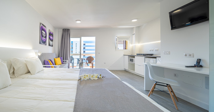 About 300 m from a beach lies the accommodation Skyview Hotel. The nearest restaurants and bars can be found within 300 m. The old town is around 400 m away. The nearest shops you can reach within around 600 m, a supermarket is around 200 m away. Nearby there is a leisure park which offers entertainment in high season. The hotel is equipped with internet access as well as 2 lifts. At the pool, deck chairs are available for free. Your valuables can be stored in the hotel safe (extra fee). Check-in is possible around the clock. For very young guests, cots can also be provided. There is also an ironing service. For your comfort there is a concierge service. If you want to explore the holiday region, you can use the car rental service close to the hotel. For guests on their honeymoon, the hotel has special offers such as sparkling wine. In your hotel, a lot of focus is placed on sustainability. This includes among others the hotel`s own recycling bins. The hotel requires that all guests pay a deposit upon arrival. Due to its barrier-free facilities , such as barrier-free entrances and wheelchair accessible rooms, the hotel is also suitable for wheelchair users. Catering As catering services the hotel offers half board, full board and breakfast only. Breakfast is offered from the buffet (extras on request). Lunch and dinner are also served from the buffet (extras on request and at extra cost). For the meals, there are a bar as well as the cafeteria. Distances