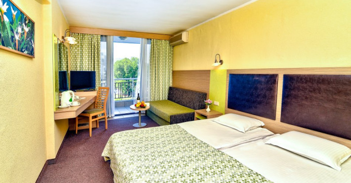 Camerele dispun de aer conditionat individual, grup sanitar propriu cu dus sau cada, uscator de par, telefon, TV satelit, radio, minibar, balcon, acces internet (contra cost).