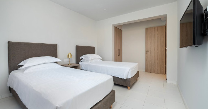 Dotari camere: Smaragdi Kos Hotel dispune de 38 de camere spatioase si complet mobilate, care pot acomoda intre 2 si 6 persoane. Exista camere duble standard, camere triple, camere cvadruple si camere de familie. Toate camerele sunt dotate cu aer conditionat, televizor cu canale prin satelit, telefon, frigider, fierbator, baie cu dus, uscator de par si balcon spatios.