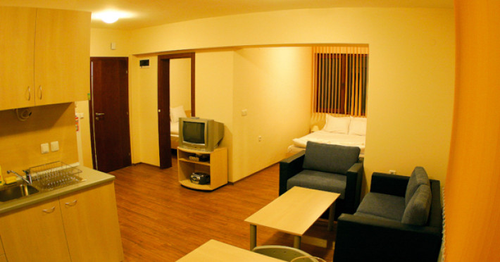 Hotelul este format din 2 cladiri de cate 4 etaje si are 9 apartamente cu cate un dormitor(max 45 mp) si 9 apartamente cu 2 dormitoare (max 65 mp), dotate cu pat matrimonial, canapea extensibila, TV & DVD, chicineta cu echipamentele necesare, frigider, baie cu dus, uscator de par,balcon, patut pentru copii (gratuit, disponibil la cerere). Mesele se pot servi in restaurantul hotelului Mountview lodge. Gratuit turistii isi pot depozita echipamentul de schi in camera amenajata in hotelul Mountview lodge.